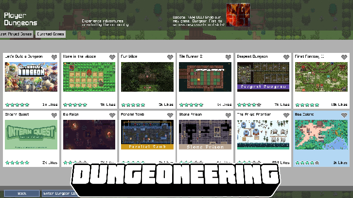 Dungeoneering Mode allows you to play experiences other users have created in Creative Mode. Browse a directory of games made by other players, guest developers, and us at Springloaded as you enjoy an endless source of creative content.